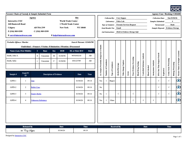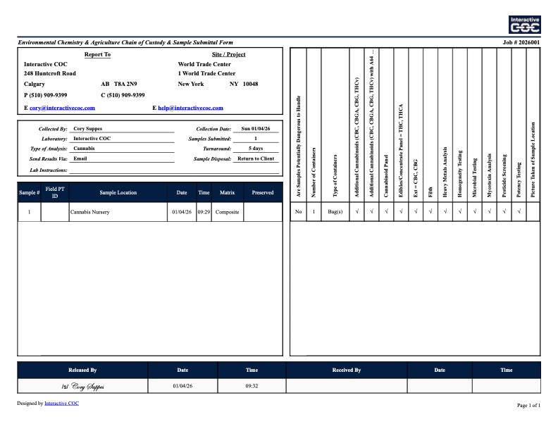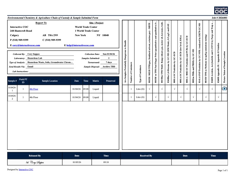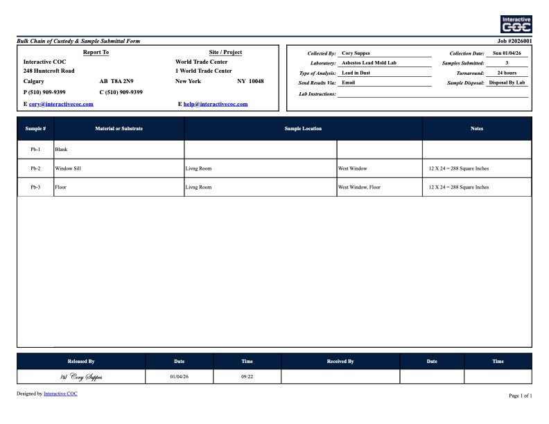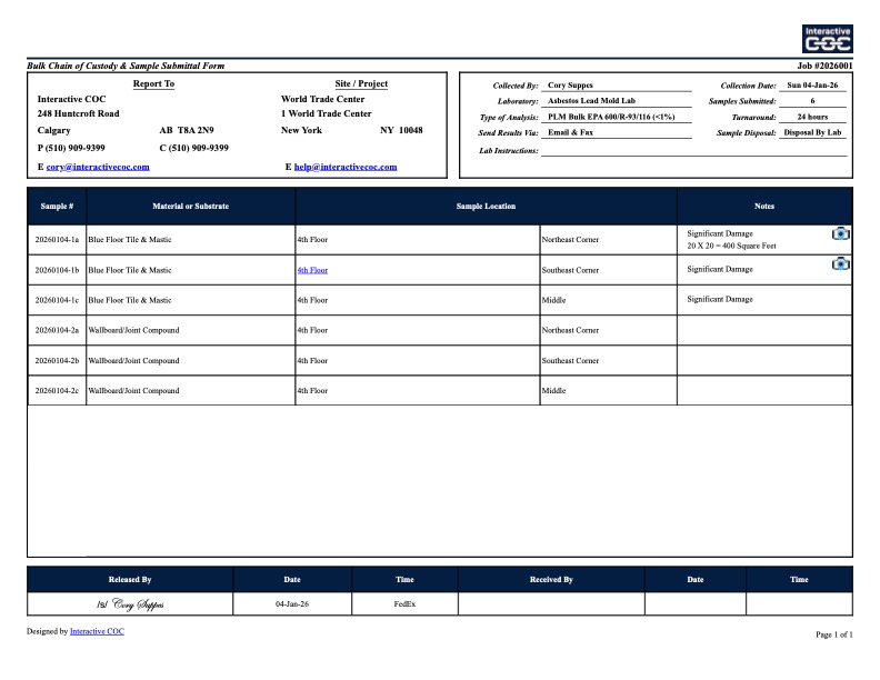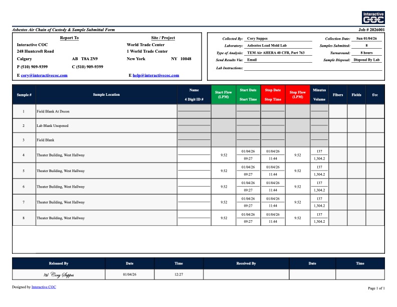 Asbestos PCM COC Asbestos Bulk COC Mold Air COC Hazardous Waste COC Forensic / Police COC Lead Wipe COC Asbestos TEM COC Cannabis COC